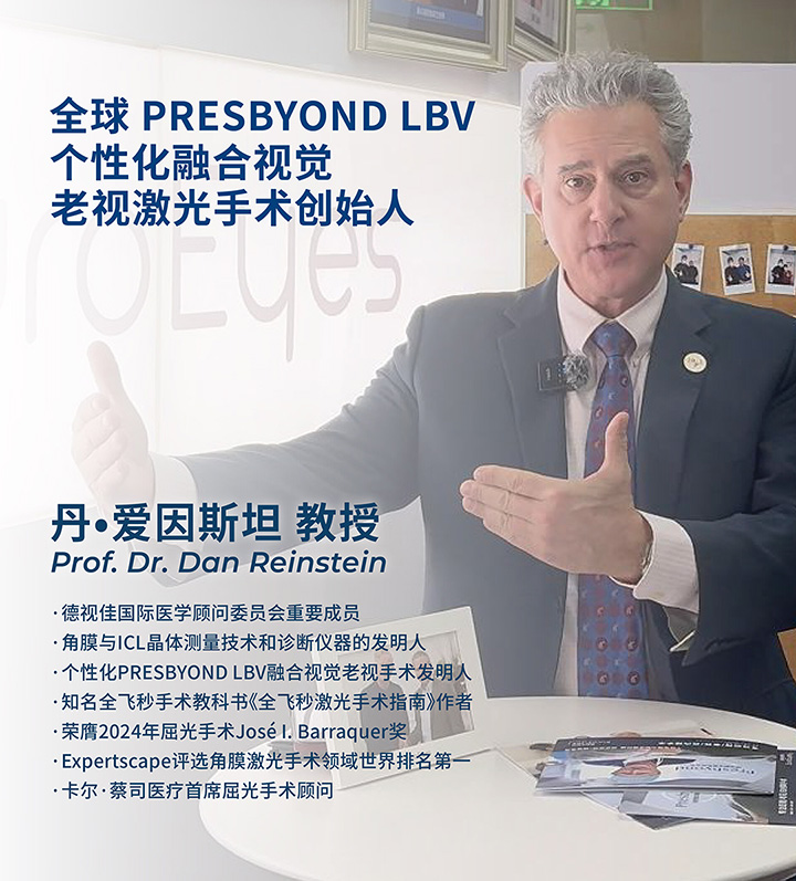 丹·爱因斯坦教授是一名屈光手术医师,在角膜疾病、屈光手术、眼科超声及生物工程领域拥有超过30年的临床与科研经验。他的工作融合了临床诊疗优势、先进影像技术、手术创新成果及学术引领能力。